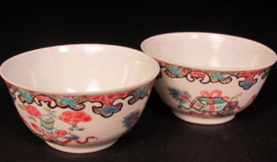 I Pair Antique Chinese Export Hand Painted Tea Bowls Cups