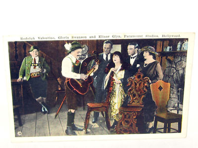 1920 POSTCARD RODOLPH VALENTINO,GLORIA SWANSON,ELINOR GLYN,PARAMOUNT STUDIOS CA