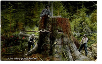 Title (ebay affiliate link): Pacific Northwest Men Hand Saw Giant Tree Stump PNC Germany Postcard