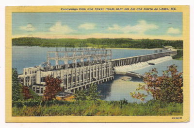 Title (ebay affiliate link): Linen, Conowingo Dam & Power House, Bel Air & Havre de Grace, MD, 1943