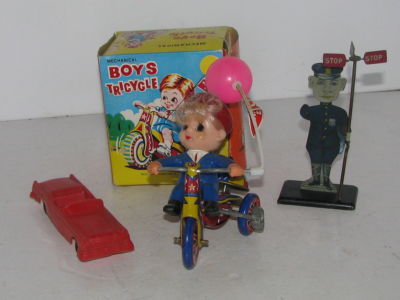 EARLY TOYS WIND UP BOYS TRICYCLE TIN TRAFIC COP & WANNA