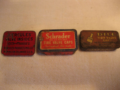 Title (ebay affiliate link): Vintage Hercules Schrader and Dill Auto/Bike Tire Valve & Cap Metal Containers