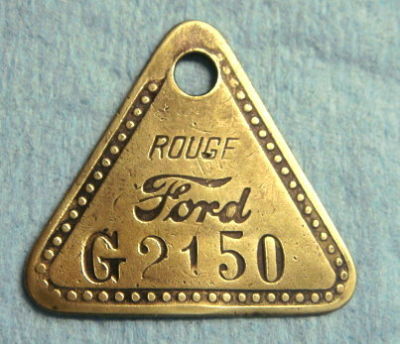 Factory Tool Check Brass Tag: FORD ROUGE "G" Factory