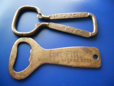 Title (ebay affiliate link): Two antique/vintage bottle openers Coke and Fort Pitt Beer
