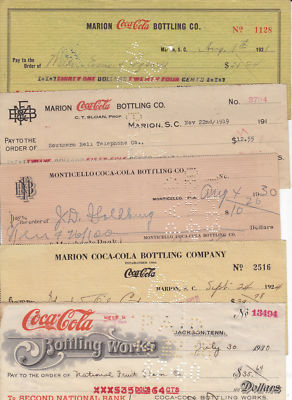 Title (ebay affiliate link): FIVE COCA-COLA CHECKS 1919, 1921, 1924, 1930, 1930