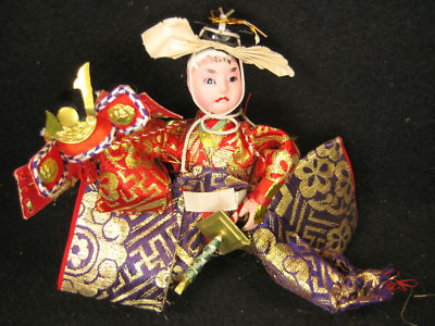 Title (ebay affiliate link): ANTIQUE JAPANESE DOLL ROYAL BROCADE KIMONO PAGE SWORD HELMET WARRIOR