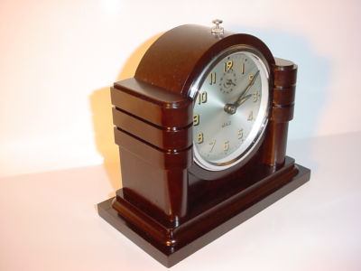 Title (ebay affiliate link): FRENCH ART DECO BAKELITE ALARM MANTEL CLOCK GWO 1940s Signed JAZ