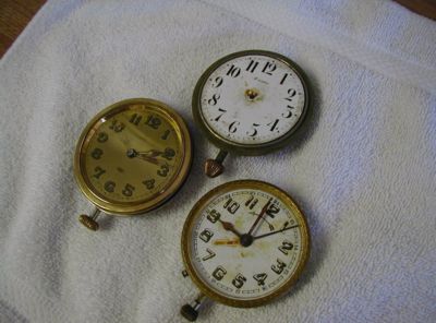 Car clocks lot of three antique clocks for parts, Swiss and German made