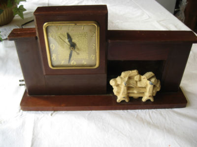 Title (ebay affiliate link): VINTAGE ANTIQUE WOODEN UNITED SHELF CLOCK WITH FIREPLACE WORKS! NO RESERVE
