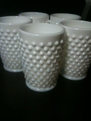 Vintage Fenton Hobnail white milk glass tumblers