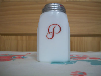 Title (ebay affiliate link): VINTAGE MCKEE ROMAN ARCH MILK GLASS RED LETTER PEPPER / SPICE SHAKER WITH LID