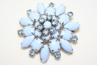 Title (ebay affiliate link): BEAUTIFUL VINTAGE JULIANA RHINESTONE & BLUE MILK GLASS FLOWER BROOCH