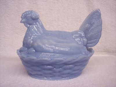 Title (ebay affiliate link): PERIWINKLE LIGHT BLUE MILK GLASS HEN CHICKEN ON NEST NESTS