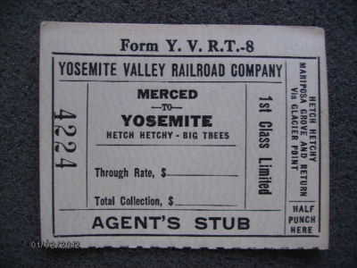Title (ebay affiliate link): YOSEMITE VALLEY RAILROAD UNUSED TICKET AGENT'S STUB MERCED TO YOSEMITE