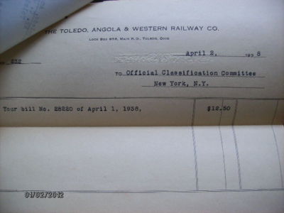 TOLEDO ANGOLA & WESTERN RAILWAY 1938 VOUCHER WITH RECEIPT