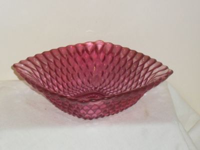 Vintage Glass Cranberry Diamond Pattern Square Bowl Dish
