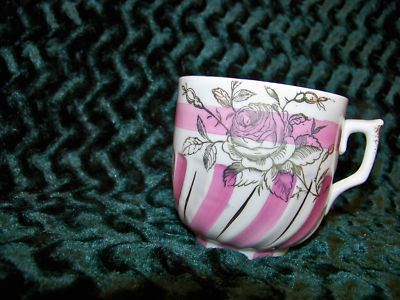 Title (ebay affiliate link): Vintage Pink Lustreware Gold Rose Mustache Cup