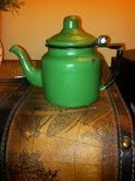 ANTIQUE Green Enamel CHILDRENS Teapot