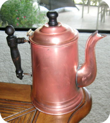 Antique Copper on Tin Coffee / Tee Pot ~ Rome 3 Double Stamped
