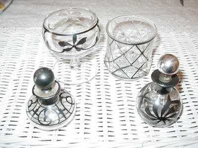 2 Antique Silver Overlay Perfume Bottles & Glasses