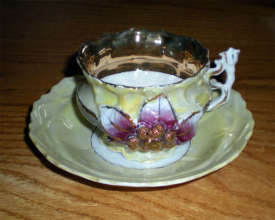 Title (ebay affiliate link): Fancy Victorian German ? Cup & Saucer Gold Yellow Purple Number 69&70
