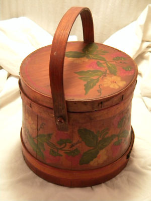 Title (ebay affiliate link): Antique Swing Handle Wood Firkin Americana Folk Art Painted Strawberries Shaker