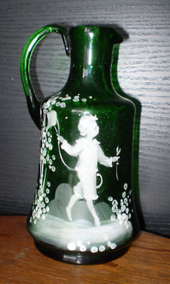 MARY GREGORY GREEN BLOWN GLASS PITCHER