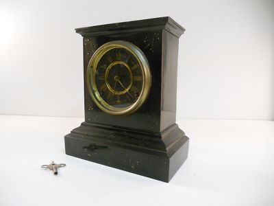 Antique Ansonia Mantle Shelf Clock, Black Cast Iron