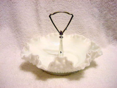 Title (ebay affiliate link): VINTAGE FENTON MILK GLASS HOBNAIL HANDLED BON BON DISH #3706 MI