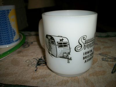 VINTAGE Serro Scotty Sportsman MILK GLASS COFFEE MUG MADE IN USA