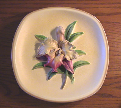 W H BOSSONS CHALKWARE Wall Plaque ENGLAND~ORCHIDS~1958