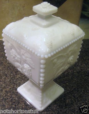 Title (ebay affiliate link): Large WESTMORELAND PANELED GRAPE MILK GLASS COVERED COMPOTE