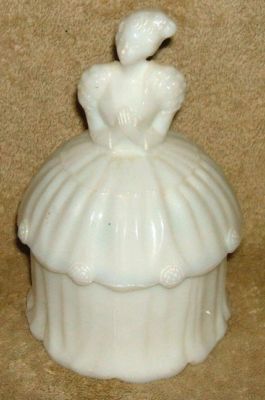 Title (ebay affiliate link): Vintage White Milk Glass Colonial Lady Covered Powder or Dresser Jar