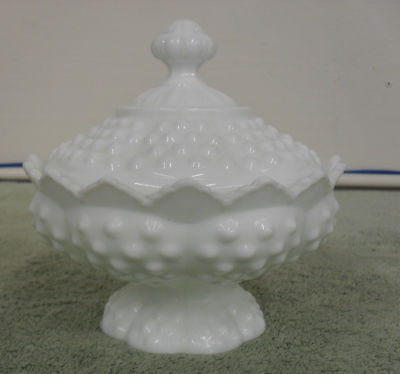Fenton Hobnail Milk Glass Covered Candy Dish