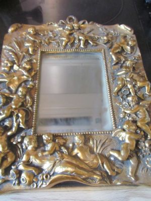 Title (ebay affiliate link): Beautiful Ornate Gilt Edged Mirror with cherub details