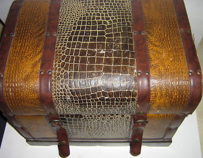 VINTAGE LEATHER & WOOD STORAGE TRUNK