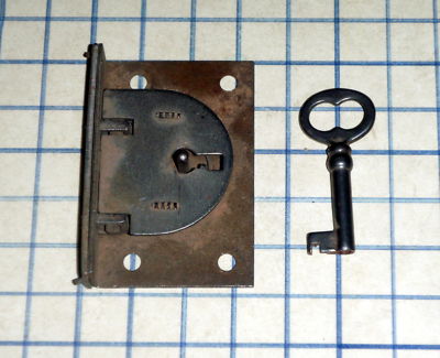 Antique Vintage old barrel skeleton key and lock furniture cabinet box desk