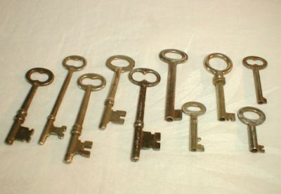 Title (ebay affiliate link): 10 Antique Vintage Skeleton Barrel Keys Doors Cabinet Furniture Keys Lot 2