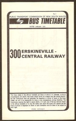 ERSKINEVILLE STATION - SYDNEY 1979 R300 SYDNEY BUSES TIMETABLE