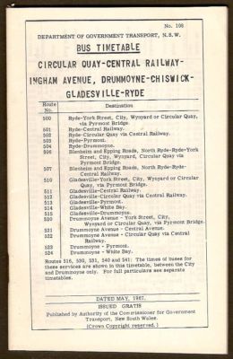 RYDE - GLADESVILLE - SYDNEY 1967 R500-524 SYDNEY BUSES TIMETABLE