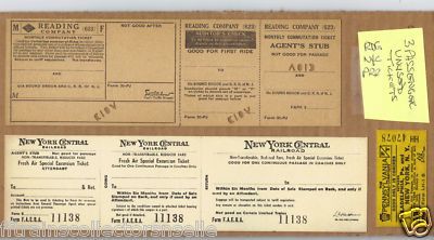 RAILROAD TICKETS ON CARDBOARD for PRR - RDG+ NEW YORK CENTRAL RR /B/N - N/U