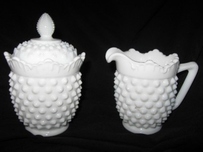 Fenton HOBNAIL MILK GLASS Creamer and Sugar Bowl w/ Lid