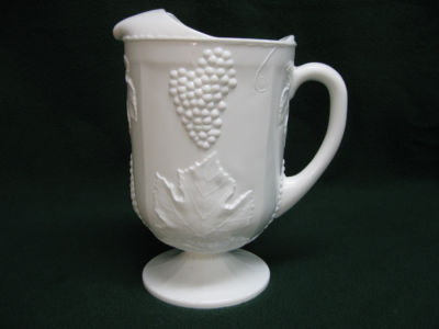 VINTAGE MILK GLASS PITCHER WITH GRAPES and LEAVES