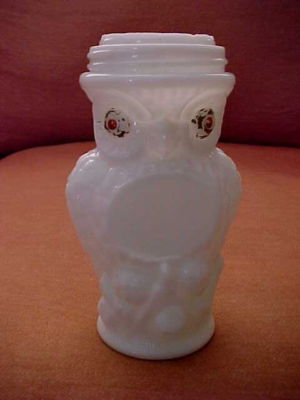 OLD VINTAGE WHITE MILK GLASS FIGURAL OWL MUSTARD JAR