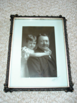 Title (ebay affiliate link): 1900's photograph transferred on milk glass signed man in suit young girl