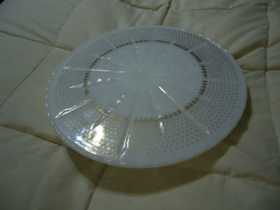 WHITE MILK GLASS GOLD LEAF PIE CAKE PEDESTAL PLATE DISH