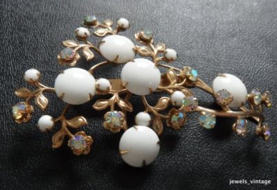 Title (ebay affiliate link): Vintage BROOCH Pin Milk White Rhinestone Glass AB Flower Cluster Prong Set QUALI
