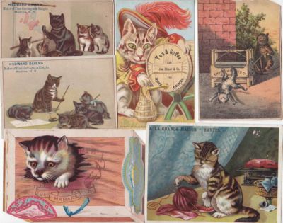 Title (ebay affiliate link): 12 Victorian Cat Kitten Trade Cards School Mirror Pin Cushion Cigar Box Scraps