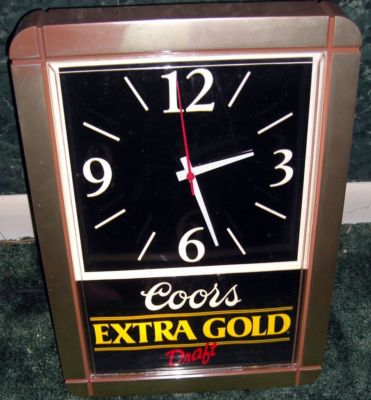COORS EXTRA GOLD DRAFT LIGHT- UP CLOCK BACK BAR