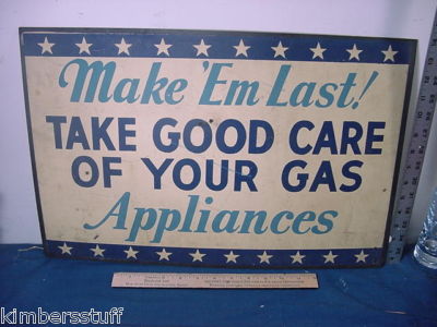 Title (ebay affiliate link): WW2 Era Advertising Patriotic Store Sign Take Good Care of Your Gas